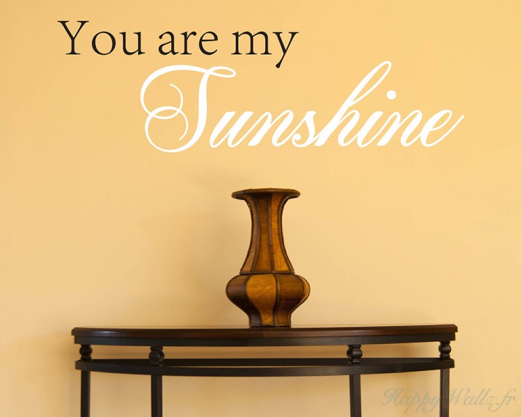 Ce sticker mural est une sorte de devise avec la citation : "You are my sunshine" Vous pouvez avoir un tel sticker de citation dans votre salon, dans votre chambre, dans votre salon ainsi que dans votre bureau. L'application d'un tel fantastique sticker citation dans votre chambre donnera un style innovant. |
