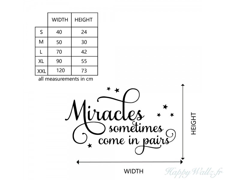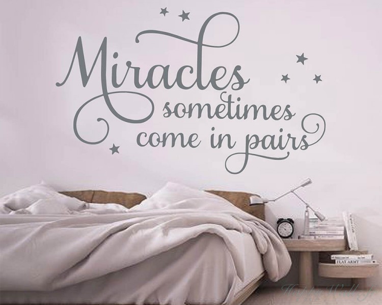 ”Miracles sometimes come in pairs“ En Français "Les miracles arrivent parfois par paires", idéal pour une chambre de jumeaux ou jumelles. Agrémenté de petites étoiles pour donner une touche douce à la chambre des enfants.