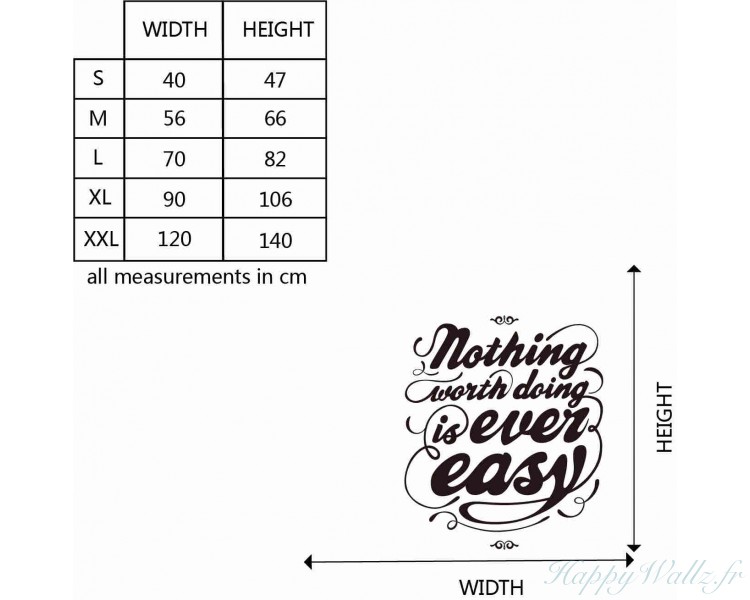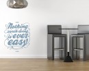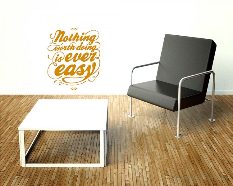 | Ce sticker mural est une sorte de devise avec la citation : "Nothing worth doing is ever easy." Vous pouvez avoir un tel sticker de citation dans votre salon, dans votre chambre, dans votre salon ainsi que dans votre bureau. L'application d'un tel fantastique sticker citation dans votre chambre donnera un style innovant. |