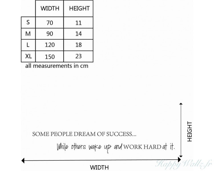 | Ce sticker mural est une sorte de devise avec la citation : "Some people dream of success, while others wake up and work hard for it." Vous pouvez avoir un tel sticker de citation dans votre salon, dans votre chambre, dans votre salon ainsi que dans votre bureau. L'application d'un tel fantastique sticker citation dans votre chambre donnera un style innovant. |