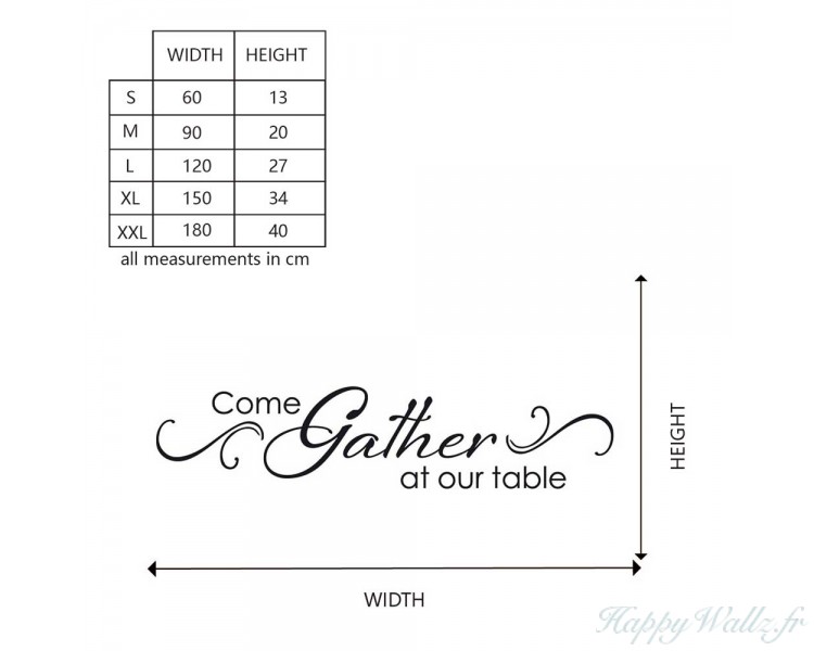 La décoration murale Rassemblez-vous à notre table est l'addition parfaite à votre cuisine ou à votre salle à manger ! Elle est disponible dans la couleur de votre choix : pour connaître les options de couleur, référez-vous au nuancier. Les photographies servent de référence,vérifiez les mesures avant toute commande.