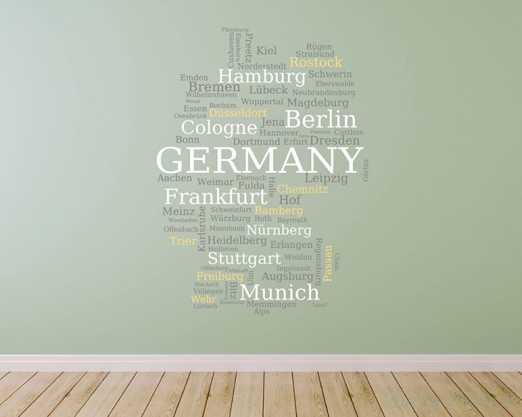 | Ce sticker mural est en forme de carte d'Allemagne avec les noms des villes. Vous pouvez le coller dans votre salon. L'application de ce sticker dans votre chambre va sûrement apporter un peu de pureté et de vitalité. |