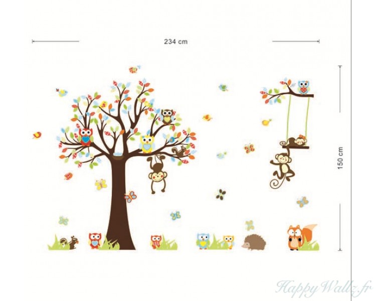 Ce sticker d'un adorable zoo de la jungle apportera une touche rafraîchissante à la chambre de vos enfants, et rapprochera vos enfants d'une nature colorée. Des singes, des hiboux et des écureuils batifolent joyeusement dans la forêt. Vous pouvez l'appliquer dans la nursery, dans la salle de jeux ou dans la chambre.