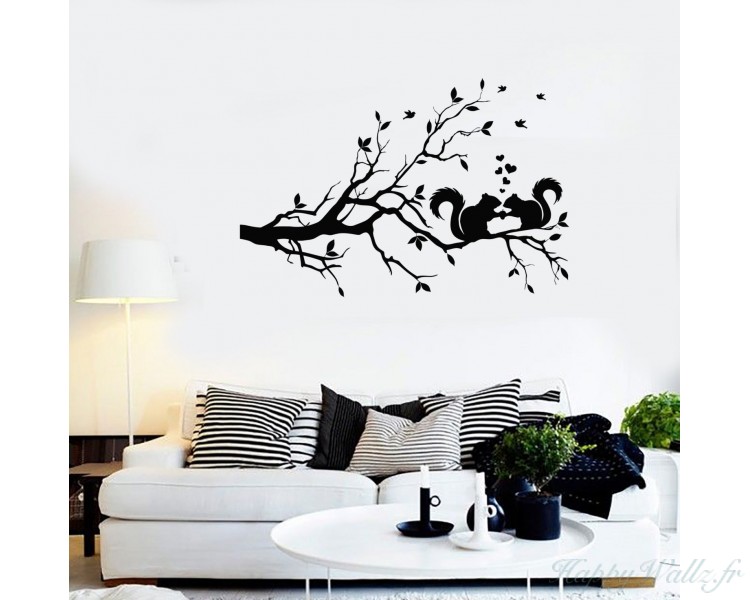 Deux écureuils sur une branche en fleurs. La touche parfait pour une chambre ou un salon.