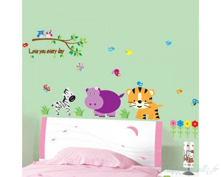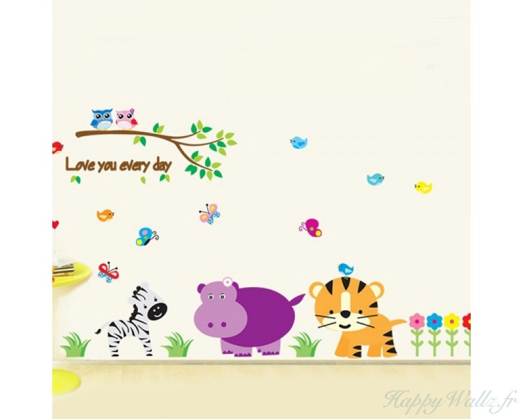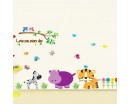 Ce sticker représente un mini-zoo avec plein d'animaux différents : hippopotame, zèbre, tigre, hibou, etc. Vous pouvez l'appliquer dans la nursery, la salle de jeux ou la chambre des enfants pour leur apprendre à aimer la nature et ses habitants.