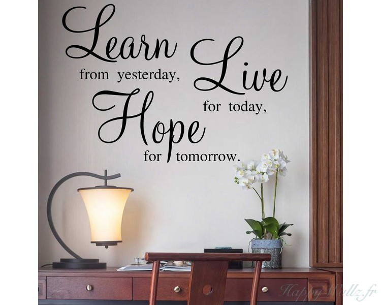 Ce sticker mural est une citation disant : Learn from yesterday,live for today,hope for tomorrow.