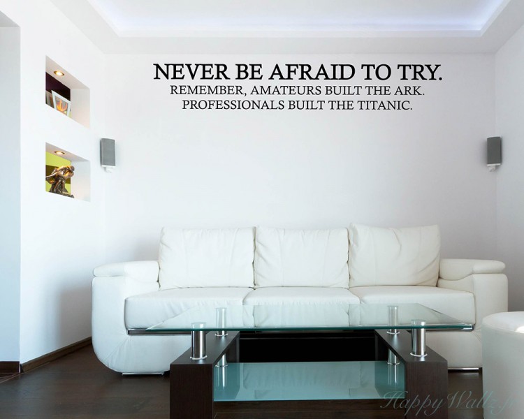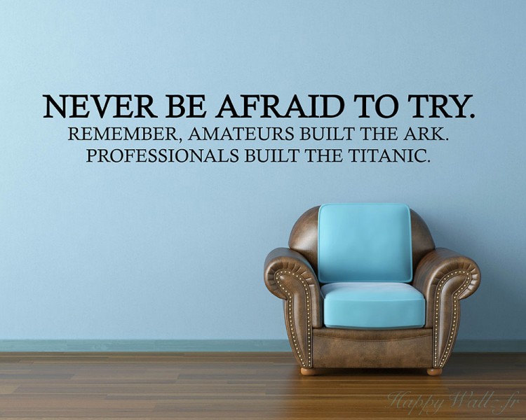 "Never be afraid to try."En Français : "N'aie jamais peur d'essayer." Vous pouvez l'appliquer dans votre salon, chambre, nursery ou bureau.