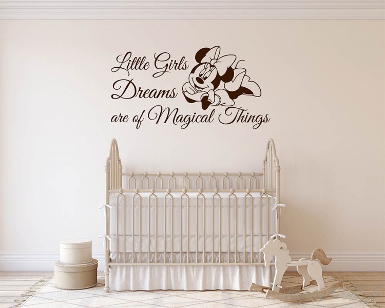 Ce sticker mural Minnie Mouse "Les rêves des petites filles sont emplis de magie" est parfait pour la chambre ou la nursery.