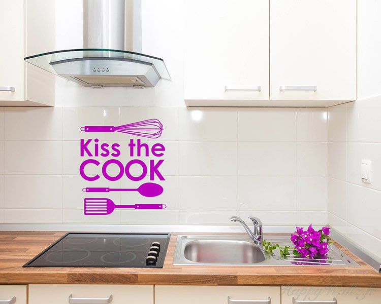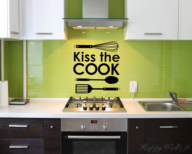 Ce sticker mural est une sorte de citation :"kiss the cook." et il y a aussi des éléments de cuisines Vous pouvez avoir un tel sticker de citation dans votre cuisine. L'application d'un tel fantastique sticker citation dans votre cuisine donnera un style innovant. |