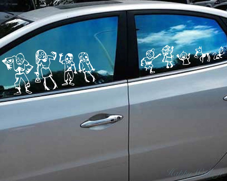 Ce sticker mural représente de nombreux personnages zombies.