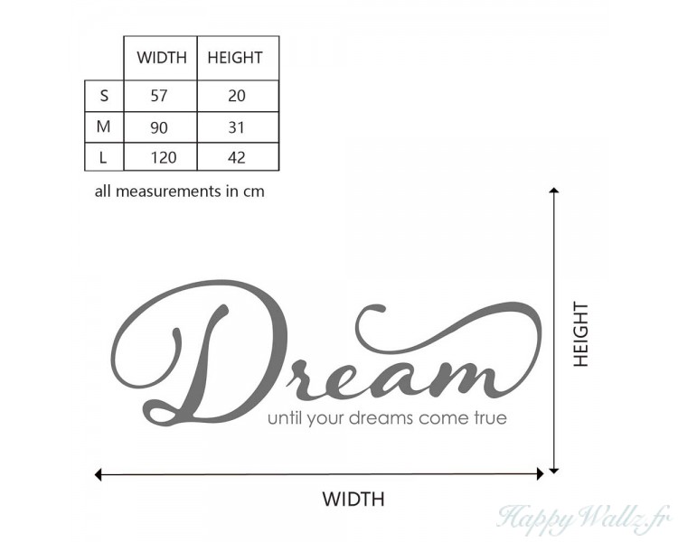 Ce sticker mural citation "Rêve jusqu'à ce que tes rêves deviennent réalité" vous inspirera dès que vous poserez les yeux dessus au réveil... une manière simple de vous motiver et de vous donner l'énergie nécessaire pour commencer une nouvelle journée !