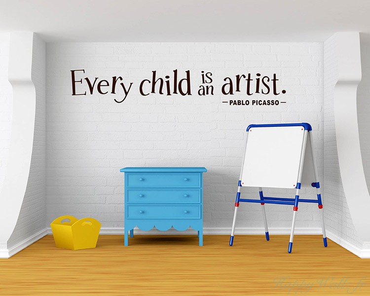 | Ce sticker mural est une sorte de devise avec la citation : "Every Child is an Artist - Picasso." Vous pouvez avoir un tel sticker de citation dans votre salon, dans votre chambre, dans votre salon ainsi que dans votre bureau. L'application d'un tel fantastique sticker citation dans votre chambre donnera un style innovant. |