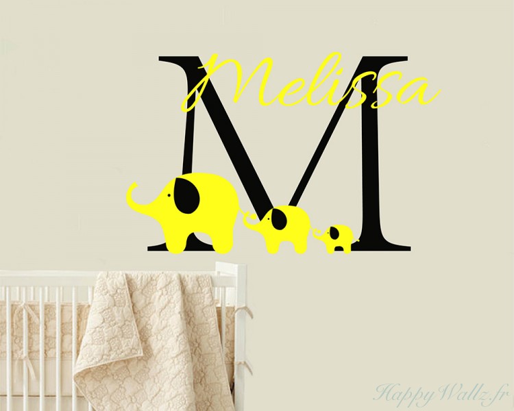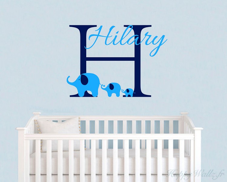 Ce sticker mural est un nom personnalisé avec votre initiale et votre nom en deux couleurs, accompagné d'une famille d'éléphants.Vous pouvez appliquer ce sticker en vinyle dans votre salon ou votre chambre pour apporter une touche chaleureuse à la pièce.