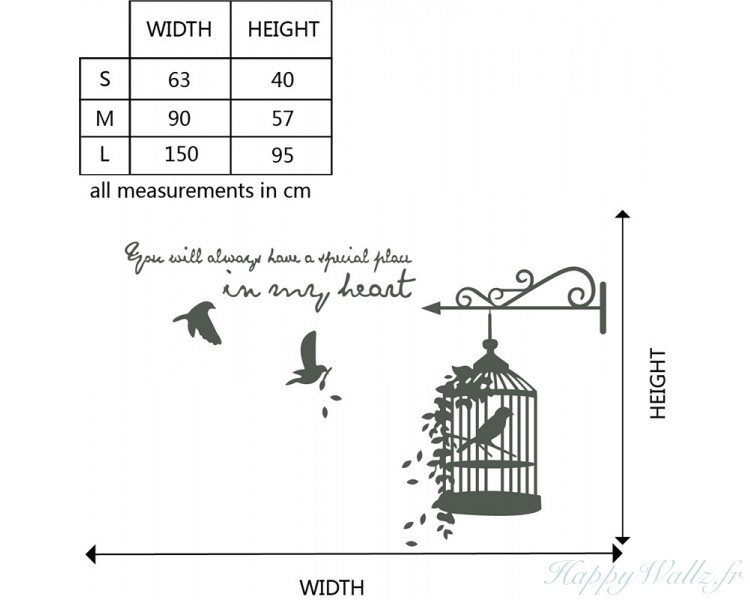 | Ce sticker mural est une cage avec une citation. Vous pouvez les coller dans votre salon. L'application d'un tel sticker dans votre chambre intérieure apportera un peu de la pureté et de la vitalité. |