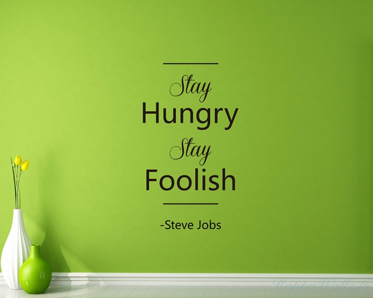 | Ce sticker mural représente une citation : "Stay hungry, stay foolish." En Français : « Reste affamé/e, reste idiot/e » Il sera idéal pour apporter une touche innovante à votre chambre, votre salon ou votre bureau. |