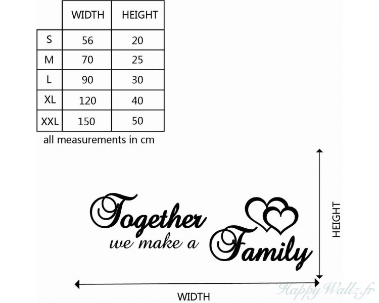 | Ce sticker mural est une sorte de devise avec la citation : "Together we make a family.." Vous pouvez avoir un tel sticker de citation dans votre salon, dans votre chambre, dans votre salon ainsi que dans votre bureau. L'application d'un tel fantastique sticker citation dans votre chambre donnera un style innovant. |