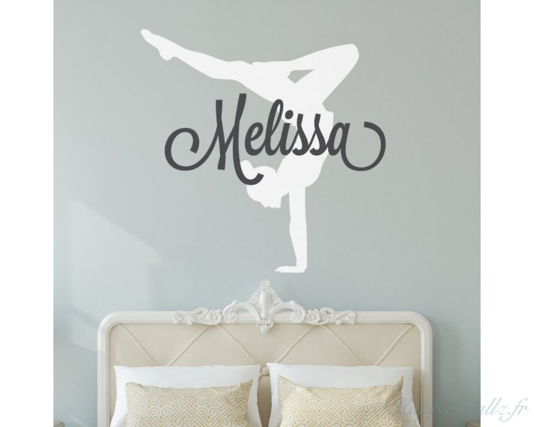 Décorez la chambre de votre petit.e gymnaste avec ce joli sticker personnalisé. Choisissez 2 couleurs afin que le sticker soit parfaitement coordonné au reste de votre décoration ! Inclut une silhouette de gymnaste et un prénom personnalisé.