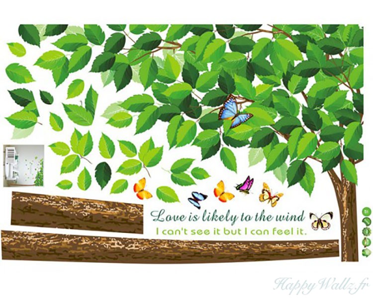 Ici représenté avec un tronc marron clair et des feuilles autour, il ressemble à un vrai. Il est fourni avec de nombreuses feuilles vertes et des papillons colorés.