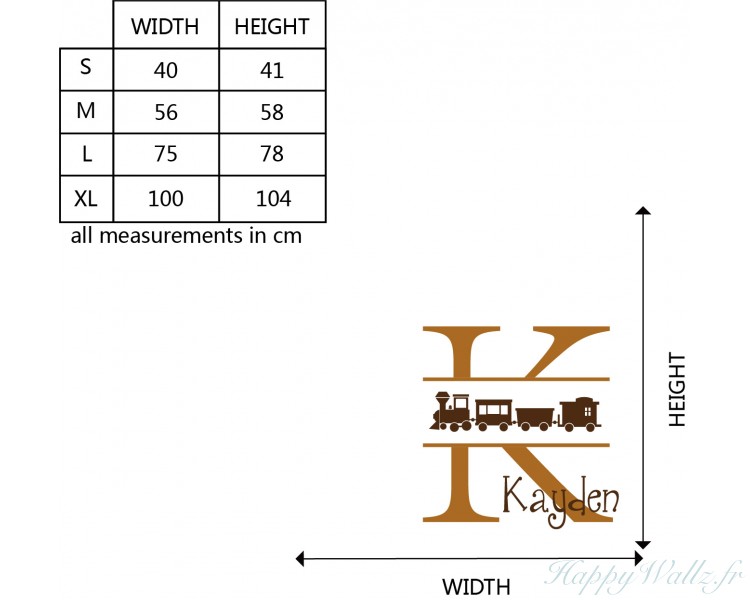 | Ce sticker mural représente le nom de votre choix et un mignon petit train. Il est particulièrement apprécié des enfants et sera une très bonne addition à leur chambre. |