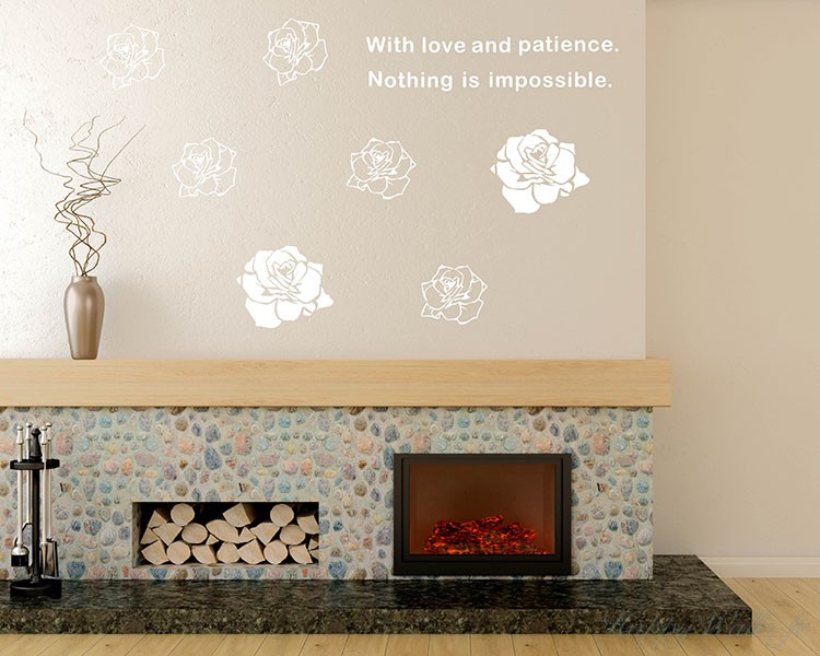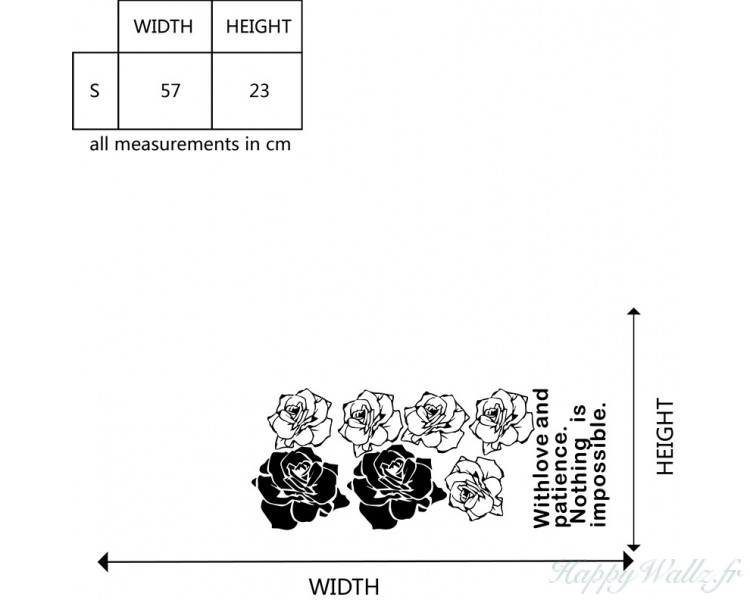 Ce sticker mural représente une rose avec une citation : "With love and patience, nothing is impossible." En Français : « Avec de l'amour et de la patience, rien n'est impossible. » Il sera idéal dans votre chambre, votre salon ou votre bureau. |