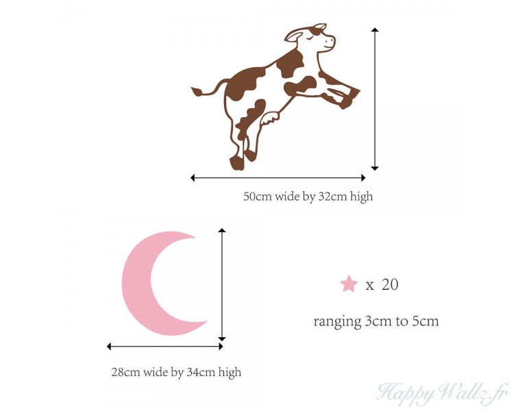 Une adorable vache saute par-dessus la lune ! Ce sticker créatif est parfait pour une nursery, par exemple au-dessus du berceau.